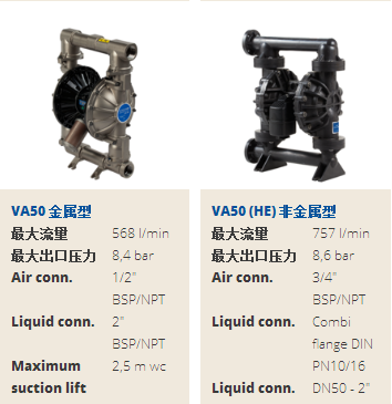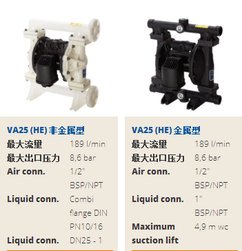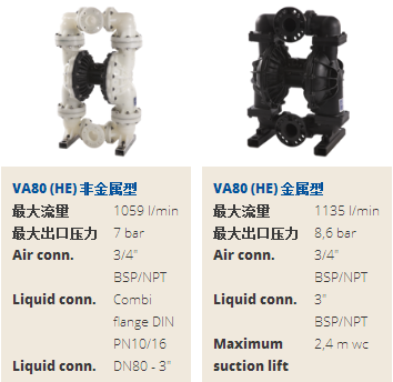 弗爾德旗下Verderair氣動雙隔膜泵品質(zhì)優(yōu)異、性能卓越,在各種應(yīng)用場合中均能平穩(wěn)、安全、可靠的泵送介質(zhì)。新型的氣閥設(shè)計(jì)確保輸送更穩(wěn)定、無死點(diǎn),即使在供氣壓力較低的情況下,氣閥也無需任何潤滑。正式由于這些獨(dú)特的設(shè)計(jì),Verderair氣動隔膜泵不但可以輸送高磨損性介質(zhì),也可以泵送高粘度或含固體顆粒的介質(zhì)。